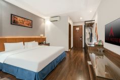 Tất cả phòng nghỉ tại A25 Hotel - 193 Trung Kính được thiết kế với sự tinh tế và chỉn chu, mang đến một không gian nghỉ ngơi tiện nghi và thoải mái. Với tông màu trung tính và hài hòa, mỗi phòng tạo cảm giác thoải mái và thư giãn ngay từ cái nhìn đầu tiên. Được trang bị nội thất hiện đại và tiện nghi, phòng ngủ mang đến trải nghiệm lưu trú sự thoải mái, giúp quý khách có những giờ phút nghỉ ngơi thư thái để chuẩn bị cho một hành trình tham quan trọn vẹn.