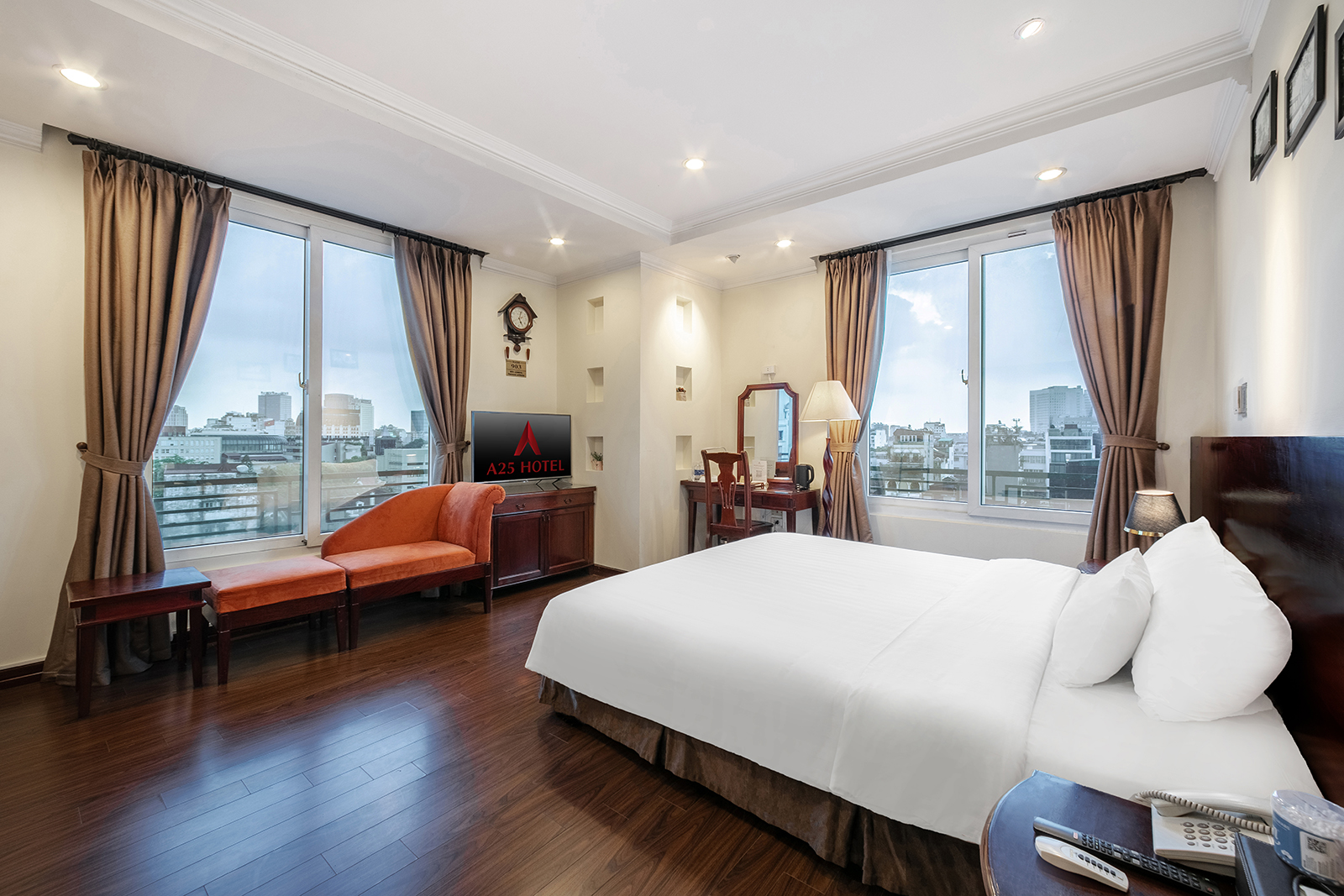 A25 Luxury Hotel - 15 Trần Quốc Toản cung cấp đa dạng các hạng phòng, từ phòng đơn cao cấp, phòng đôi sang trọng đến phòng dành cho gia đình, đáp ứng mọi nhu cầu của quý khách. Các phòng được thiết kế tỉ mỉ với ban công hướng mặt tiền, sử dụng những gam màu tinh tế cùng với cách bài trí trang nhã tạo cảm giác ấm cúng. Mỗi phòng đều được trang bị đầy đủ tiện nghi, nhằm phục vụ và mang đến cho quý khách những trải nghiệm thoải mái như đang ở chính ngôi nhà của mình.