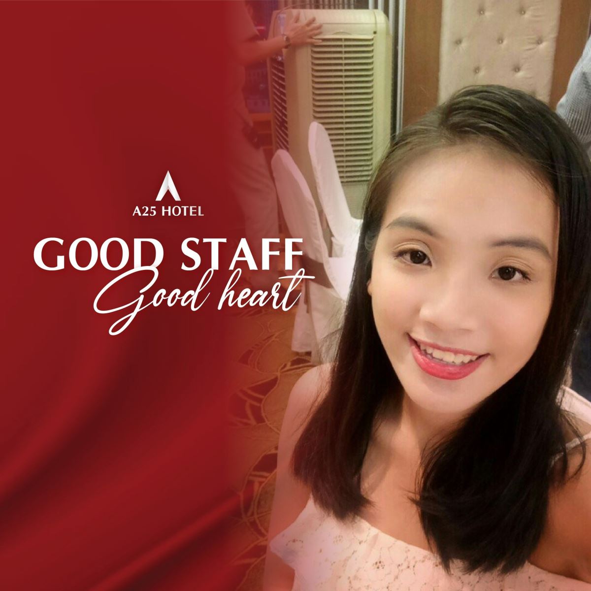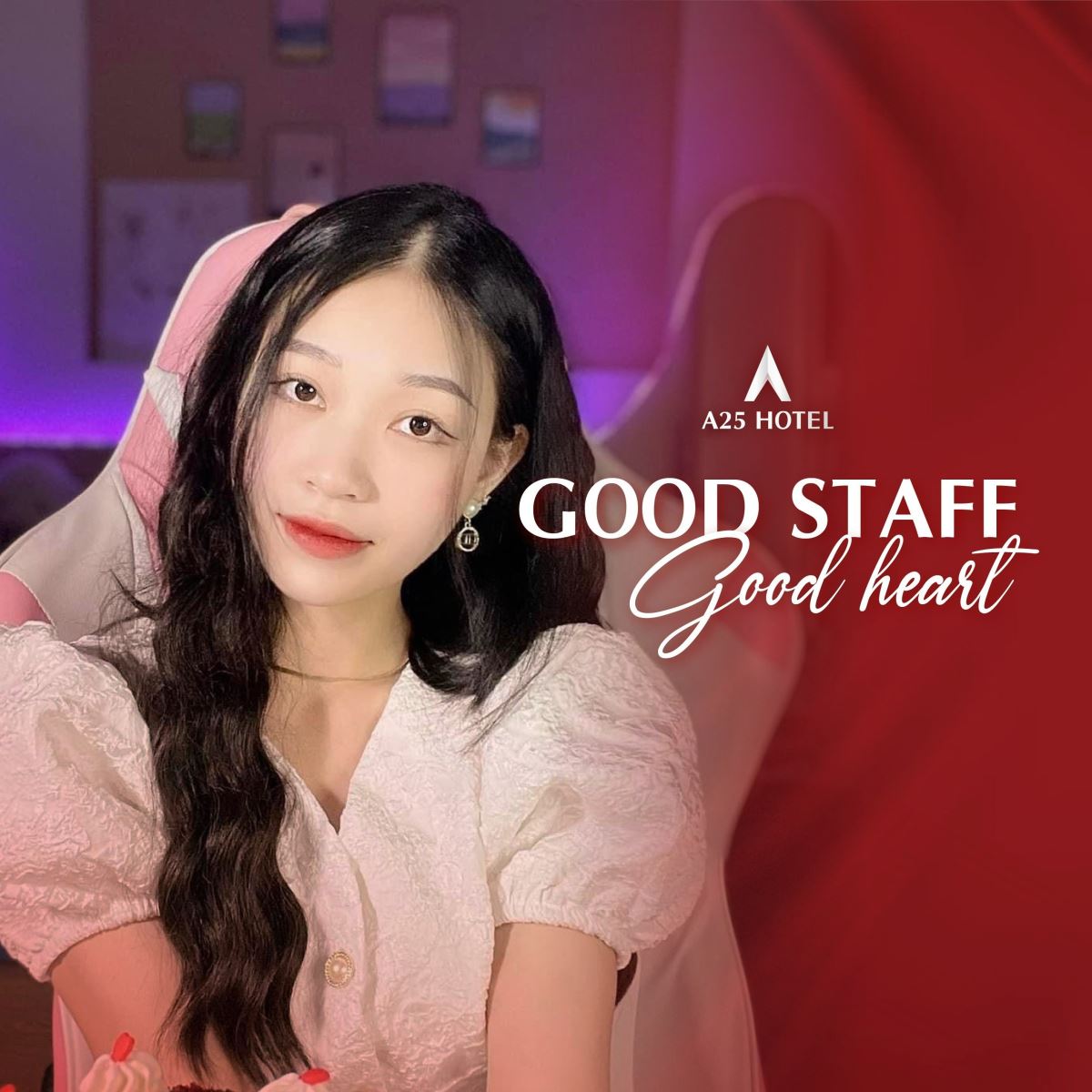 Được khách hàng khen ngợi đó là một vinh dự, Vân Anh cô nàng lễ tân tại cơ sở Đội Cấn liên tục trong nhiều tuần được khách hàng khen qua rất nhiều phản hồi từ thư đánh giá hoặc kênh hotline. Với nụ cười tươi tắn luôn tràn đầy năng lượng, Vân Anh mang trong mình sứ mệnh của một tia nắng ấm áp luôn sưởi ấm mọi khách hàng khi đến với A25 Hotel.