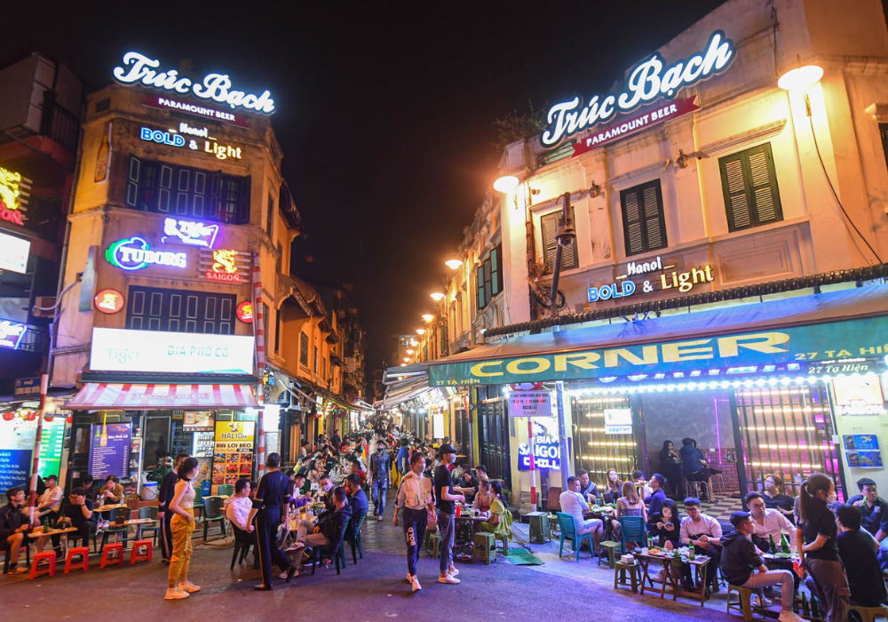 Khép lại ngày trải nghiệm bằng việc ghé thăm phố Tạ Hiện – nơi được mệnh danh là “khu phố không ngủ” của Hà Nội. Vào buổi tối, nơi đây trở nên sôi động với những quán bia vỉa hè đông đúc. Tại đây, bạn có thể ngồi lại, nhâm nhi cốc bia mát lạnh, thưởng thức vài món ăn vặt và trò chuyện cùng bạn bè. Không gian về đêm tại Tạ Hiện mang đến một cảm giác rất riêng, một phần không thể thiếu trong cuộc sống về đêm của người dân Hà Nội.