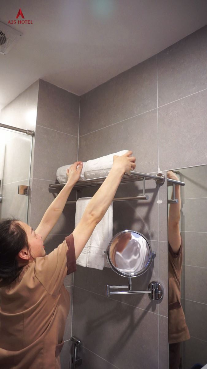 Nổi tiếng với hơn 20 năm hoạt động trong lĩnh vực khách sạn nhà hàng, khách hàng yêu mến A25 Hotel không chỉ vì sự tiện nghi, chất lượng dịch vụ chu đáo mà A25 Hotel còn được nhận rất nhiều lời khen ngợi về chất lượng buồng phòng sạch sẽ và gọn gàng. Vệ sinh phòng khách sạn chính là một trong những nghiệp vụ quan trọng nhất. Tập đoàn đầu tư các cán bộ chuyên viên đào tạo nguồn được tu nghiệp tại các hệ thống đào tạo lớn trên thế giới, kỹ năng thị phạm bài bản và dễ tiếp thu, đội ngũ nhân viên buồng phòng của A25 Hotel đang ngày càng trẻ hóa về tuổi đời nhưng phát triển tay nghề một cách vượt trội.