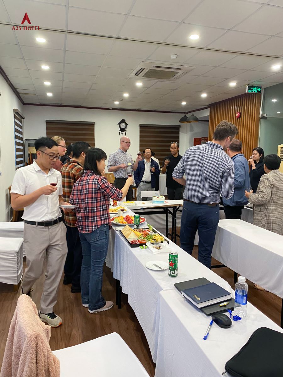 Hệ thống phòng họp của A25 Hotel 12 Ngô Sĩ Liên với trang thiết bị hiện đại và đa dạng, nhân viên phục vụ chuyên nghiệp, năng động và nhiệt tình, chúng tôi có thể tư vấn và tổ chức nhiều sự kiện khác nhau như: Hội thảo và sự kiện, triển lãm, tiệc liên hoan, tiệc sinh nhật, tiệc đặc biệt trong tháng/ năm… Ngoài ra, chúng tôi còn phục vụ nhiều thực đơn món Việt, Nhật và Trung Hoa hấp dẫn bao gồm thực đơn set, thực đơn buffet và tiệc trà nhằm đáp ứng tất cả các nhu cầu của khách hàng.
