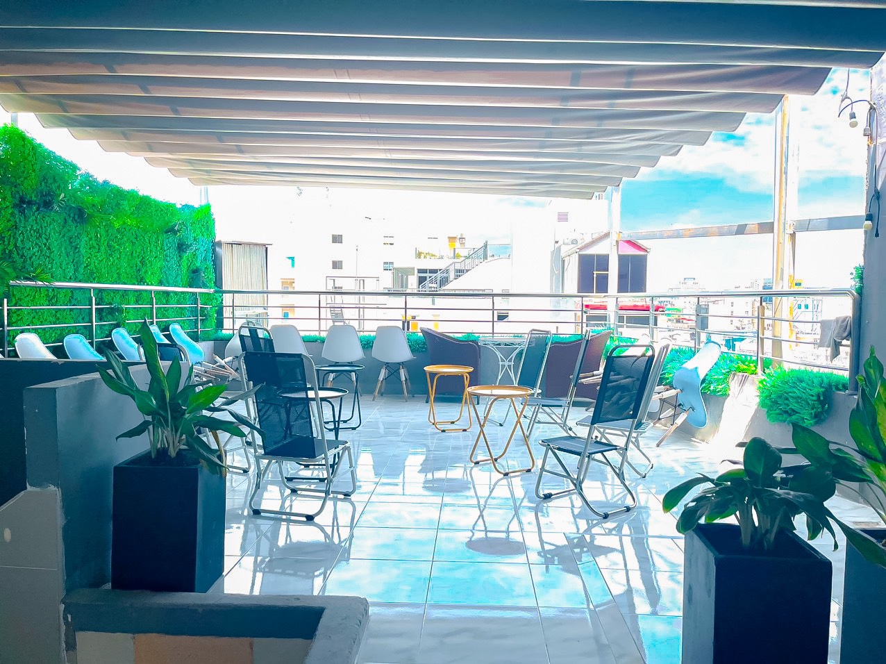 Khuôn viên trên cao càng đẹp hơn về chiều tối, khoảng không của khách sạn được bố trí ghế nghỉ để khách hàng có thể thả hồn thư giãn với ngàn mây và ngắm nhìn bức tranh bầu trời rộng lớn, yên bình. Khí hậu của Sài thành về chiều tối ôn hòa và có nhiều gió mát chắc chắn khiến không gian sân vườn trên cao của khách sạn A25 Hotel 14 Phó Đức Chính thêm cuốn hút và tạo cảm giác thoải mái cho khách hàng nghỉ ngơi.
