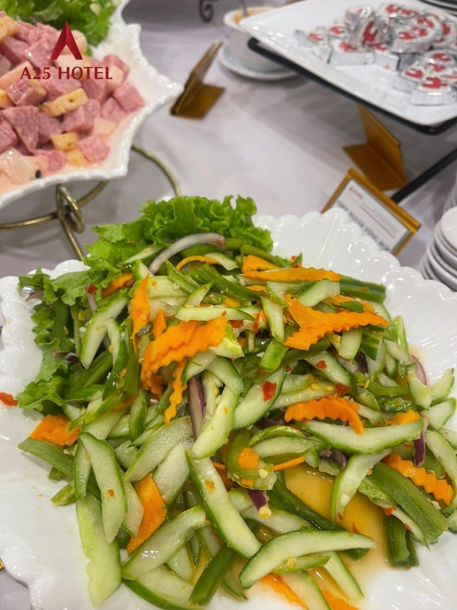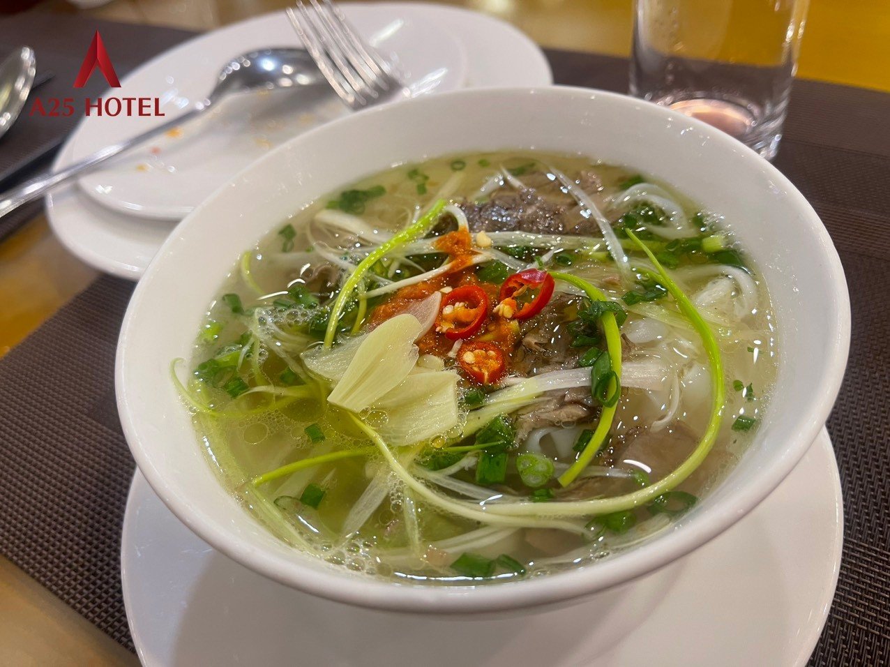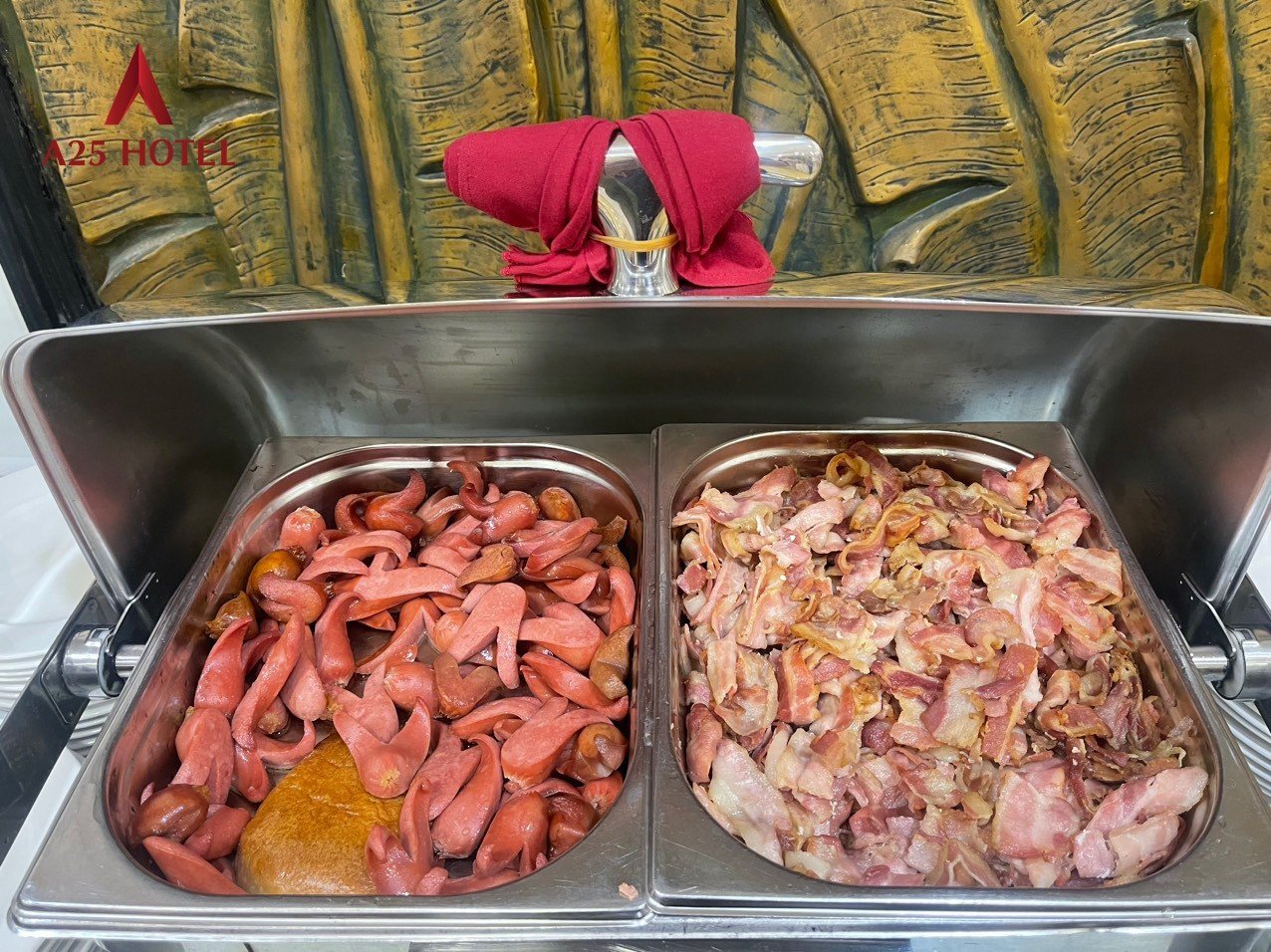 Sau khi đã tốn một lượng calories không hề ít, bữa sáng thơm ngon bổ dưỡng trong tiệc buffet chào buổi sáng được diễn ra ngay tại tầng 2, thuận tiện cho việc di chuyển và thưởng thức. Anh Duy rất thích không gian của nhà hàng tầng 2 bởi sự bày trí hiện đại, thoáng mát nhưng vẫn rất đẳng cấp. Ngồi ăn tại vị trí đẹp nhất của nhà hàng, anh Duy vui vẻ cùng người bạn chọn lựa những món ăn yêu thích được chế biến nêm nếm tròn vị như thịt ba chỉ hấp, xúc xích thơm om tiêu, bánh mì mè, mì xào hay phở. Anh dành nhiều lời khen cho bếp trưởng của nhà hàng A25 Hotel 684 Minh Khai bởi phong cách nấu ăn của anh như dành cho người yêu thương vậy, nịnh miệng và đưa đẩy cảm xúc thực khách.