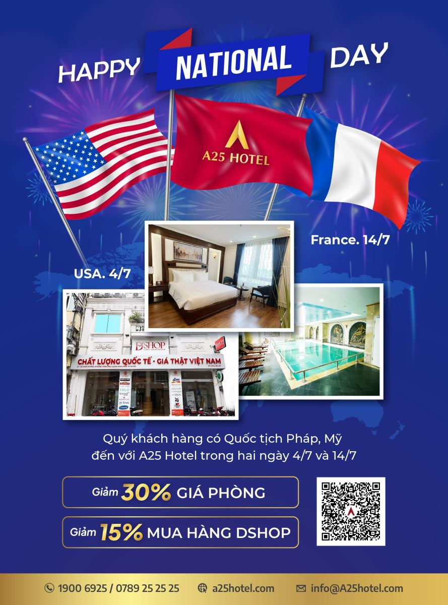 A25 Hotel Chào Mừng Quốc Khánh Hoa Kỳ và Quốc Khánh Pháp