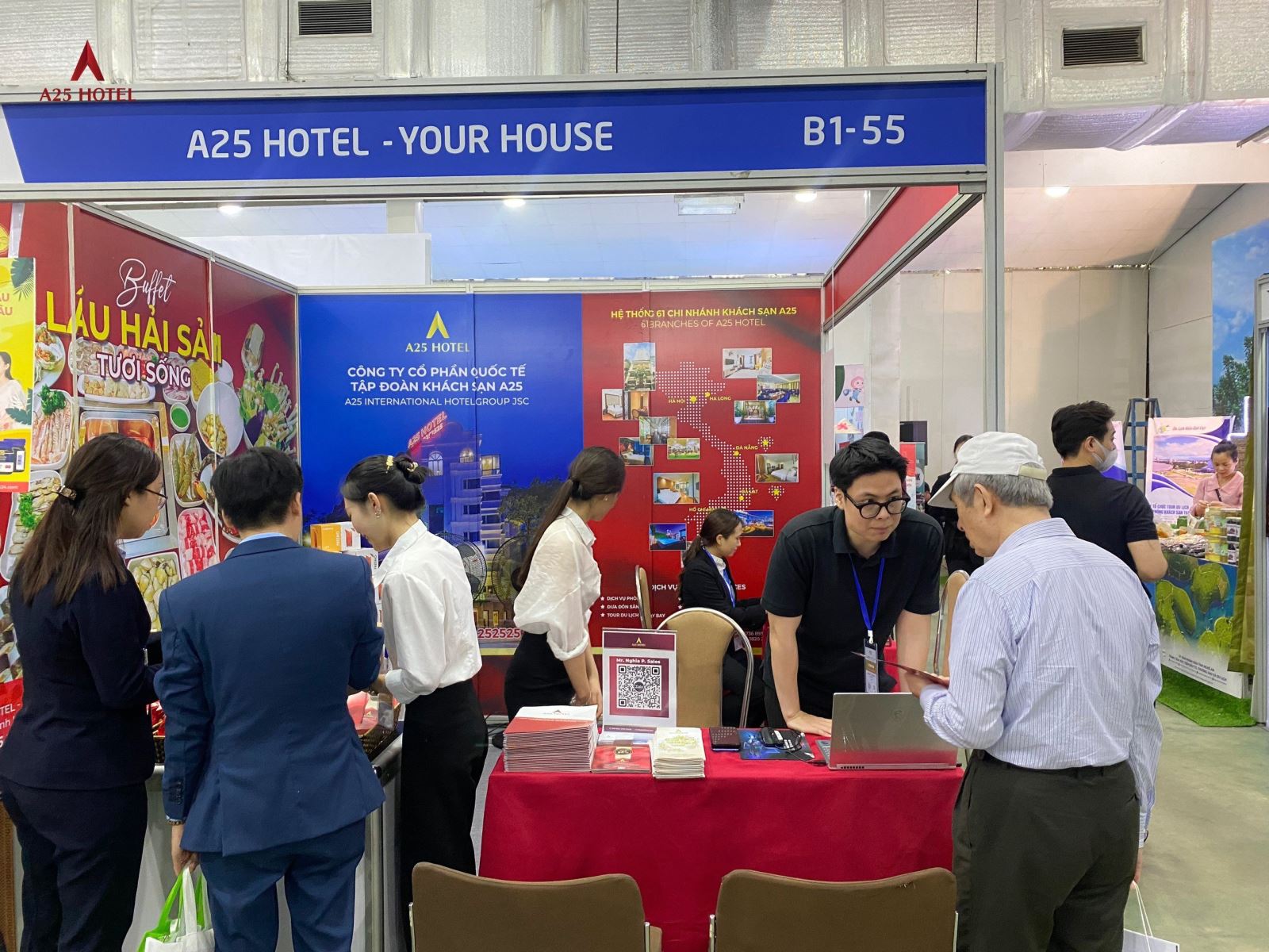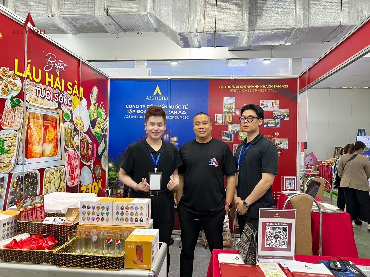 Năm đầu tiên xuất hiện và cũng rất may mắn được ở vị trí thuận lợi, gian hàng A25 Hotel Group với màu đỏ nhận diện rất đặc trưng đã thu hút rất nhiều khách hàng đi qua từ ánh nhìn đầu tiên. Quy mô 61 cơ sở kinh doanh khách sạn với bề dày 20 năm, A25 không còn quá xa lạ khi rất nhiều vị khách hàng đi qua cũng phải thốt lên rằng mình thường xuyên ở A25, A25 giá cả rất phải chăng, có vị khách còn khen quá rẻ so với chất lượng.