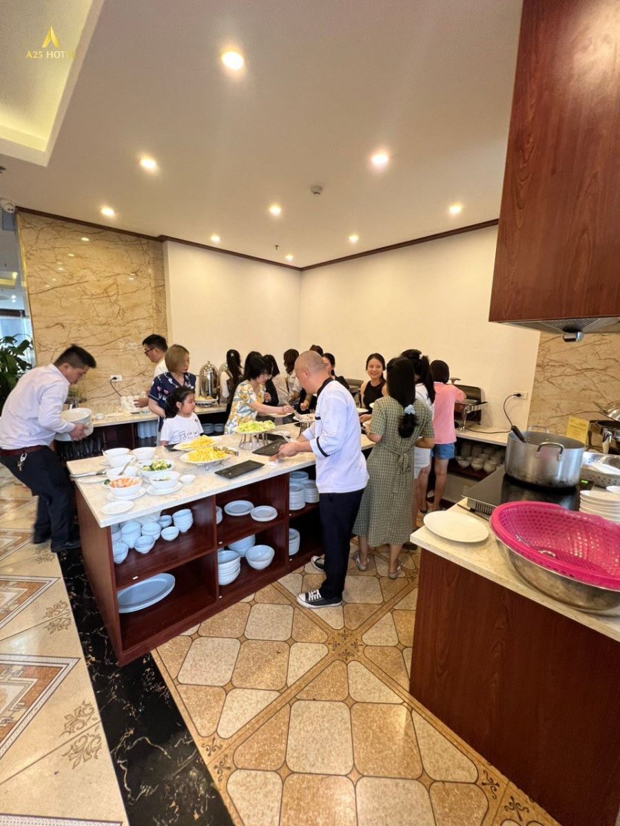 Tập đoàn khách sạn A25 đã lên dây cót tinh thần cho toàn bộ đội ngũ nhân sự của khách sạn tại Hạ Long, nâng cao chất lượng phục vụ, tập huấn tay nghề đặc biệt là bộ phận buồng phòng và nhà hàng để bảo đảm phòng nghỉ luộn sạch sẽ khang trang, chất lượng món ăn nóng hổi thơm ngon và tròn vị, mang đậm dấu ấn của khách sạn A25 – khách sạn của mọi nhà.