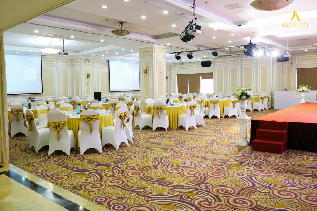 Trong những ngày gần đây, khi tiết trời đã dịu đi như nàng thu gõ cửa, A25 Hotel lại được rộn ràng đón nhận những đơn đặt hàng phòng nghỉ cho gia đình và người thân của khá nhiều khách hàng tổ chức đám cưới. Các sảnh tiệc của khách san cũng được sưởi ấm bởi những tiệc cưới đông đúc và linh đình.