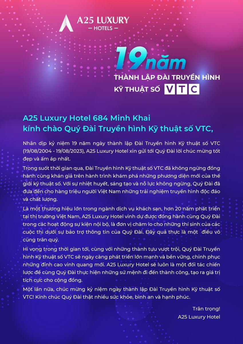 A25 Luxury Hotel 684 Minh Khai chúc mừng ngày thành lập Quý Đài Truyền hình Kỹ thuật số VTC