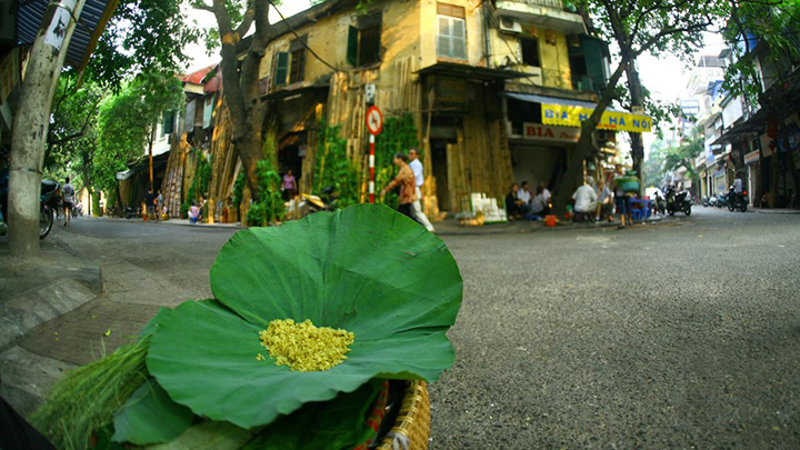 Một trong những điều thú vị của Hà Nội mà không thể tìm thấy ở đâu khác chính là những gói cốm thơm lừng. Chỉ Hà Nội mới có loại cốm nếp gói lá sen thơm lừng.