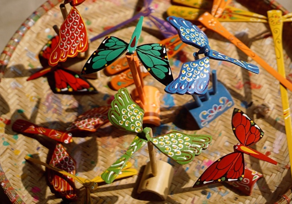 Du khách khi đến đây sẽ được chiêm ngưỡng những con chuồn chuồn mộc mạc, dân dã làm từ tre. Sản phẩm có đủ kích thước, giá cả phải chăng, chỉ từ 3.000 – 10.000 đồng.