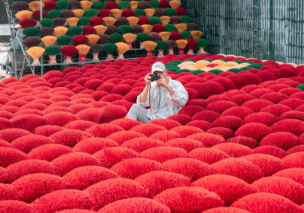 Đến đây, du khách sẽ ấn tượng bởi hình ảnh các chân hương đỏ rực xếp thành từng bó dọc theo con đường làng. Chúng nở rộ như những bông hoa tươi thắm, mang đến khung cảnh đặc biệt khó quên.