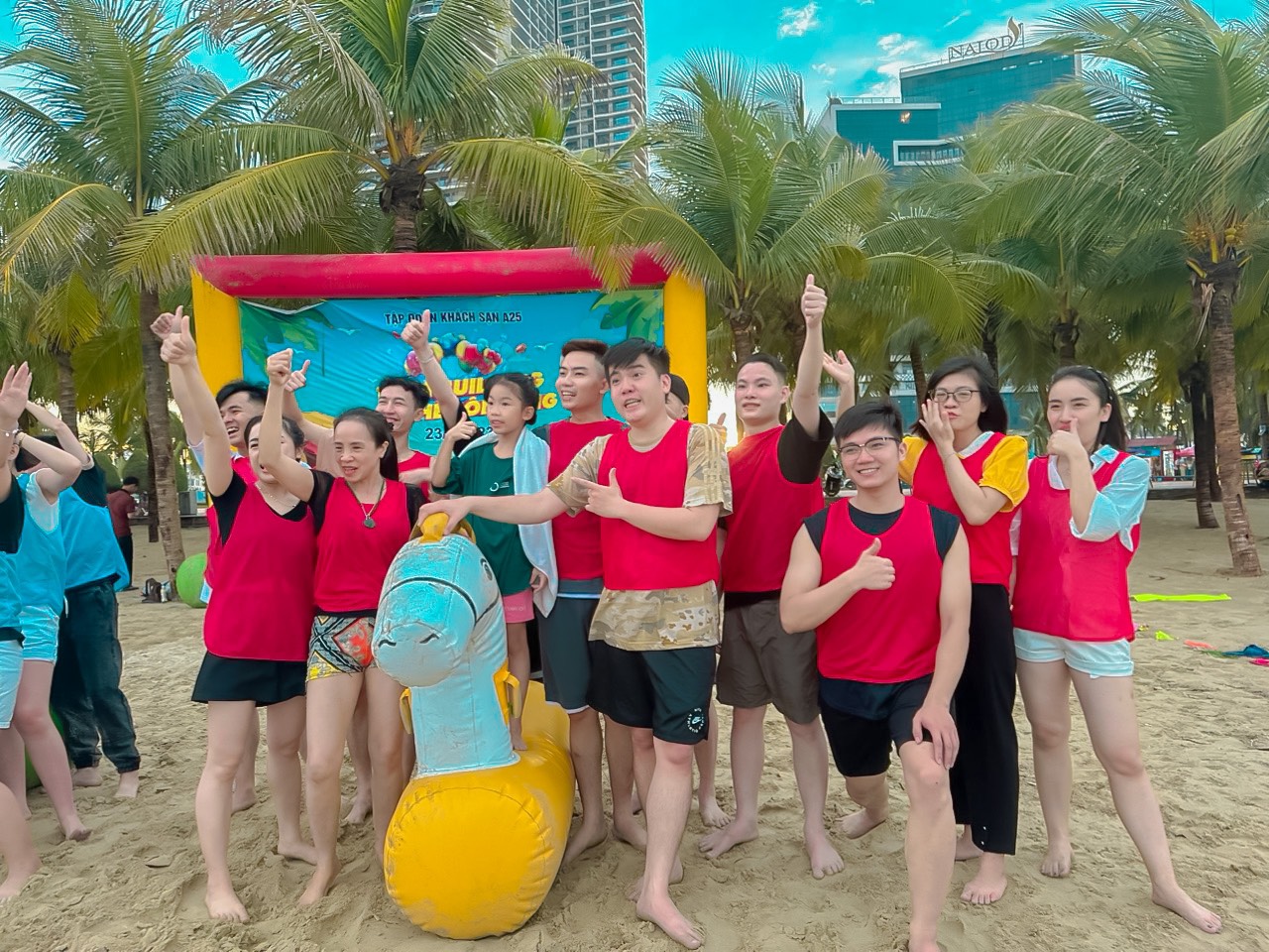 Trải qua hành trình dài đến Đà Nẵng, đội ngũ của chúng tôi đã có cơ hội thư giãn tại bãi biển Sơn Trà tuyệt đẹp. Cát trắng mịn màng và biển xanh biếc đã tạo nên một bức tranh thiên nhiên tuyệt vời. Chúng tôi đã cùng nhau tham gia các trò chơi thể thao trên biển, tận hưởng nắng và gió biển trong không gian thoải mái.