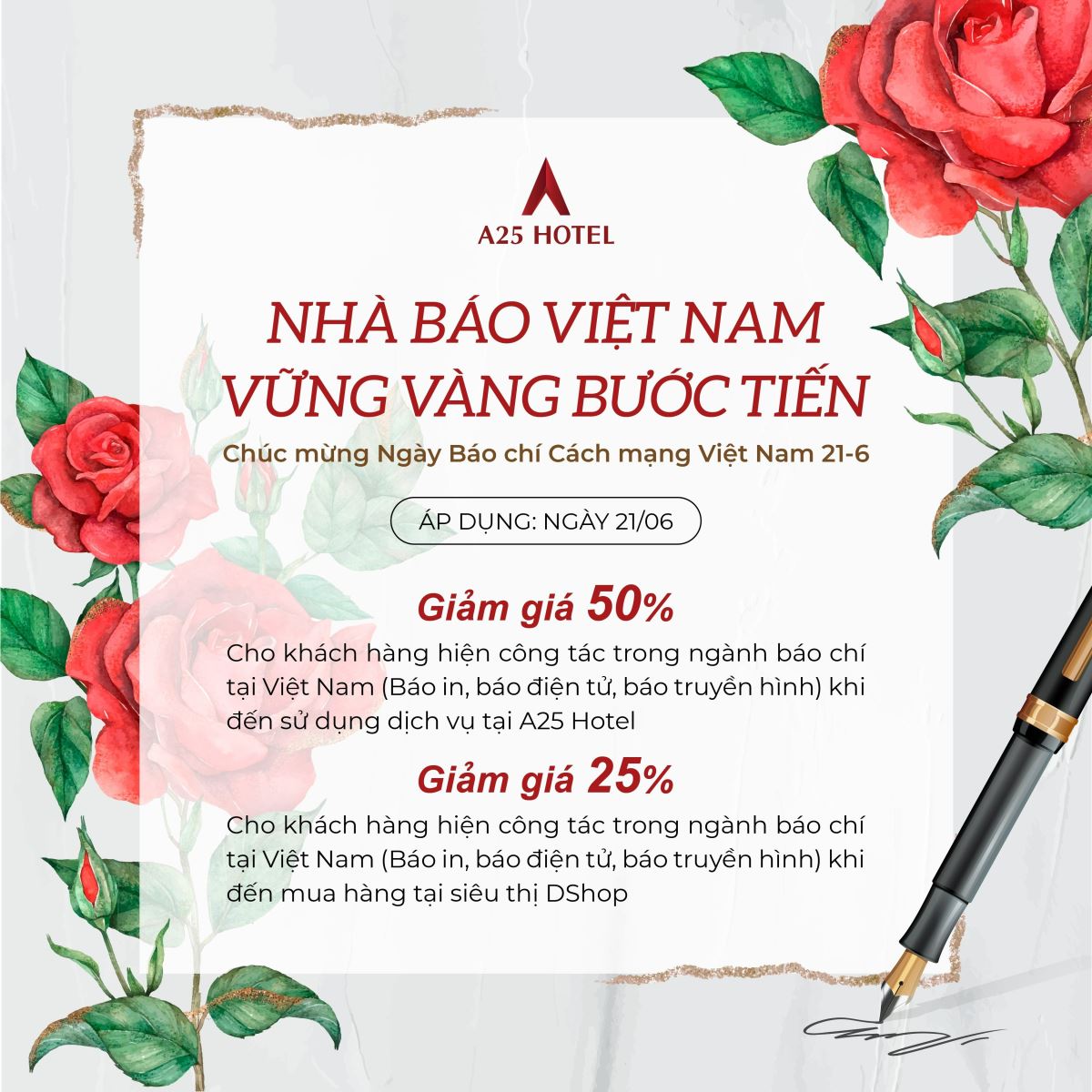 Nhân ngày Báo Chí Việt Nam, A25 Hotel xin được gửi tình cảm chân thành tới các phóng viên báo đài qua chương trình tri ân: Nhà Báo Việt Nam, Vững Vàng Bước Tiến “