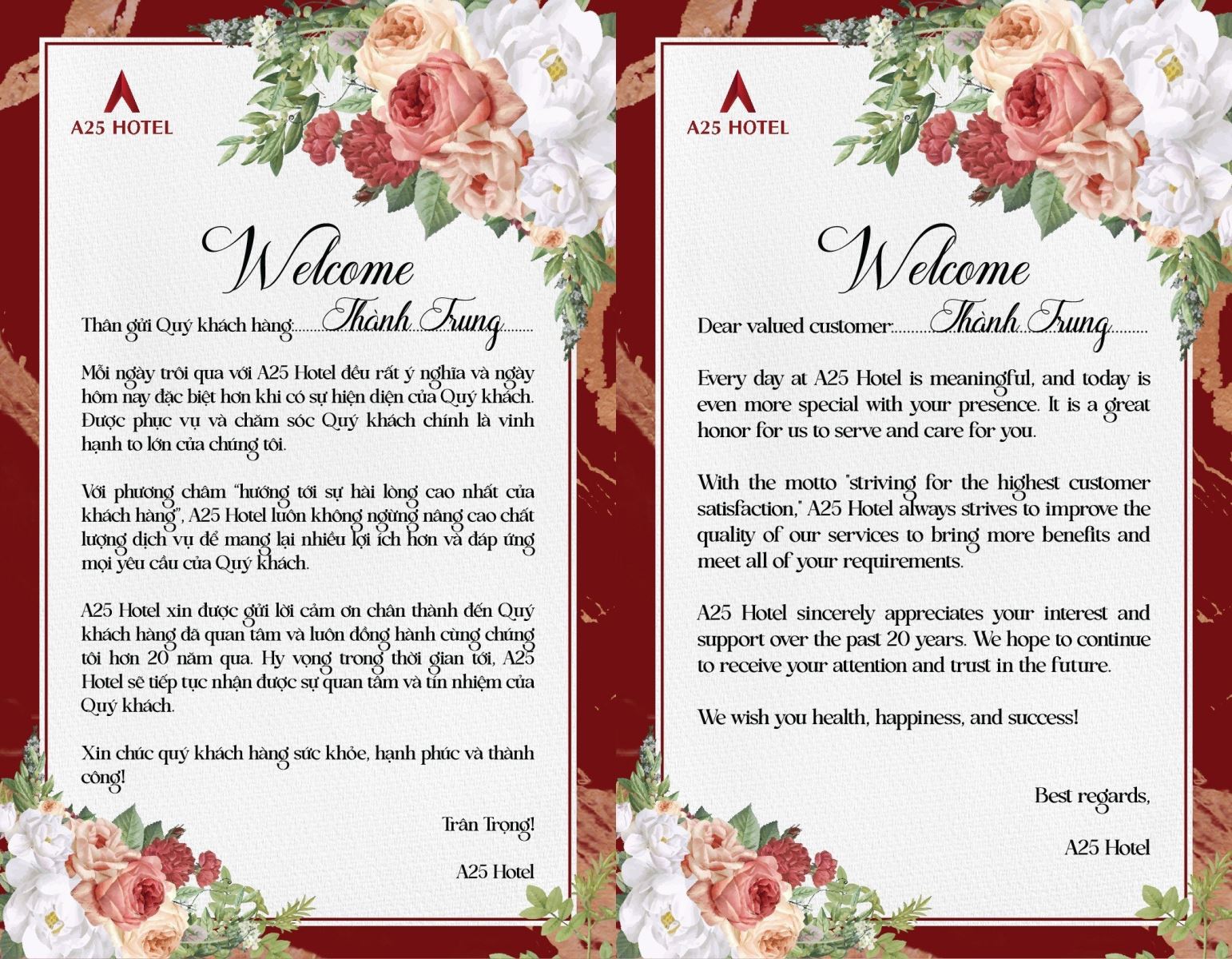 Tấm thiệp ngỏ Quý khách cầm trên tay chứa đựng những tình cảm biết ơn vô bờ của tập thể đội ngũ nhân viên A25 Hotel luôn ngày đêm cố gắng để mang lại cho Quý khách những trải nghiệm tuyệt vời.