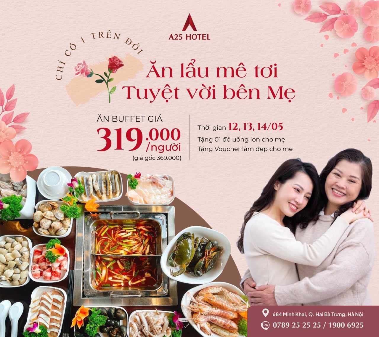 Buffet lẩu hải sản A25 “ Ăn lẩu mê tơi, tuyệt vời bên mẹ “ ngày 12,13,14/5